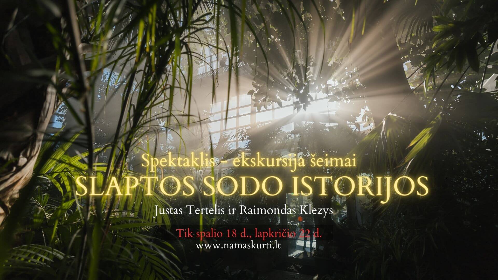 Spalvingame ir rudeniškai nuteikiančiame VDU Botanikos sode – ypatingas teatro įvykis. Spalio 18 d. ir lapkričio 22 d. oranžerijos erdvėse vyks interaktyvus spektaklis-ekskursija „Slaptos sodo istorijos“, sukurtas režisierių Raimondo Klezio ir Justo Tertelio.